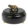 Шкатулка круглая "Медведь" из черного змеевика 15х15х11 см