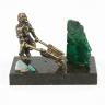 Сувенир бронзовая статуэтка "Рудокоп с тачкой" с камнем